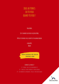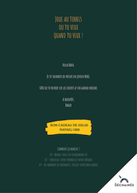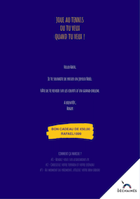 Vous recevrez par e-mail la e-carte cadeau. Vous pourrez imprimer le PDF joint au format A4, généré aux couleurs que vous choisissez.